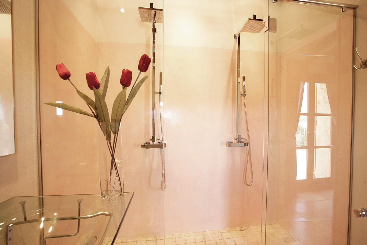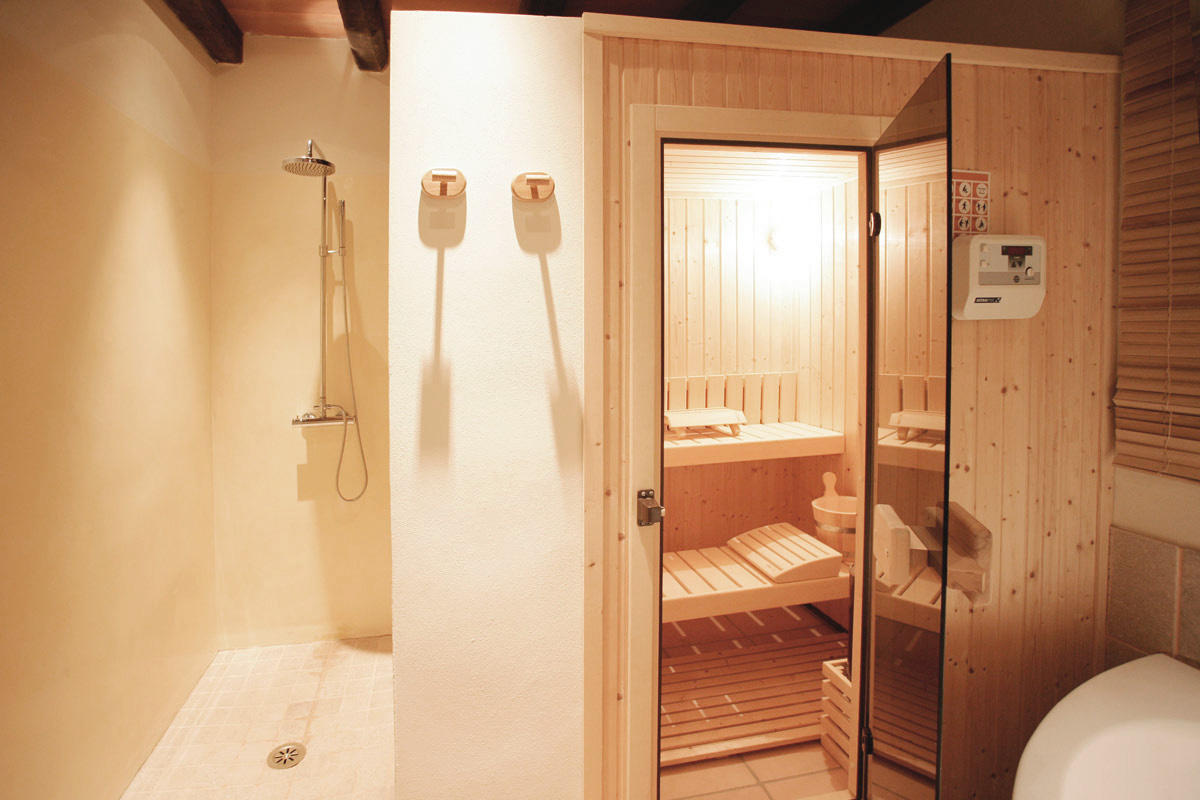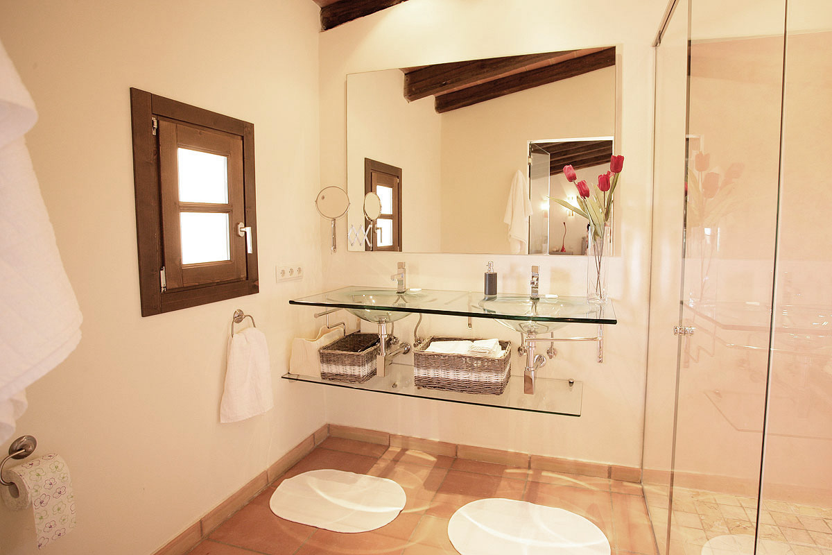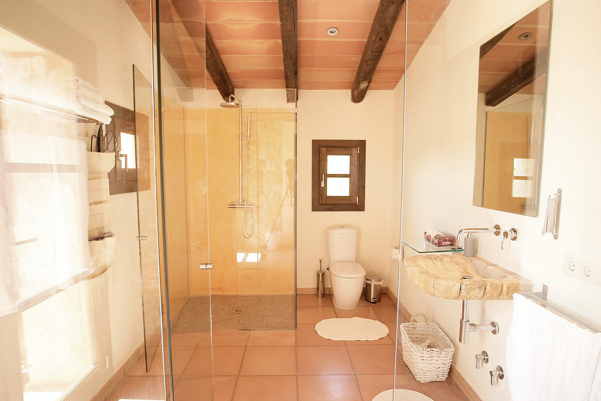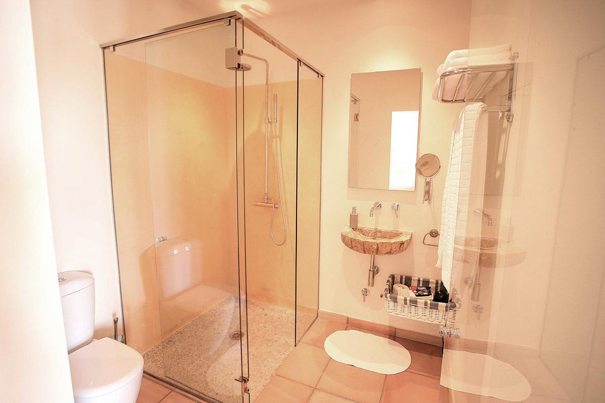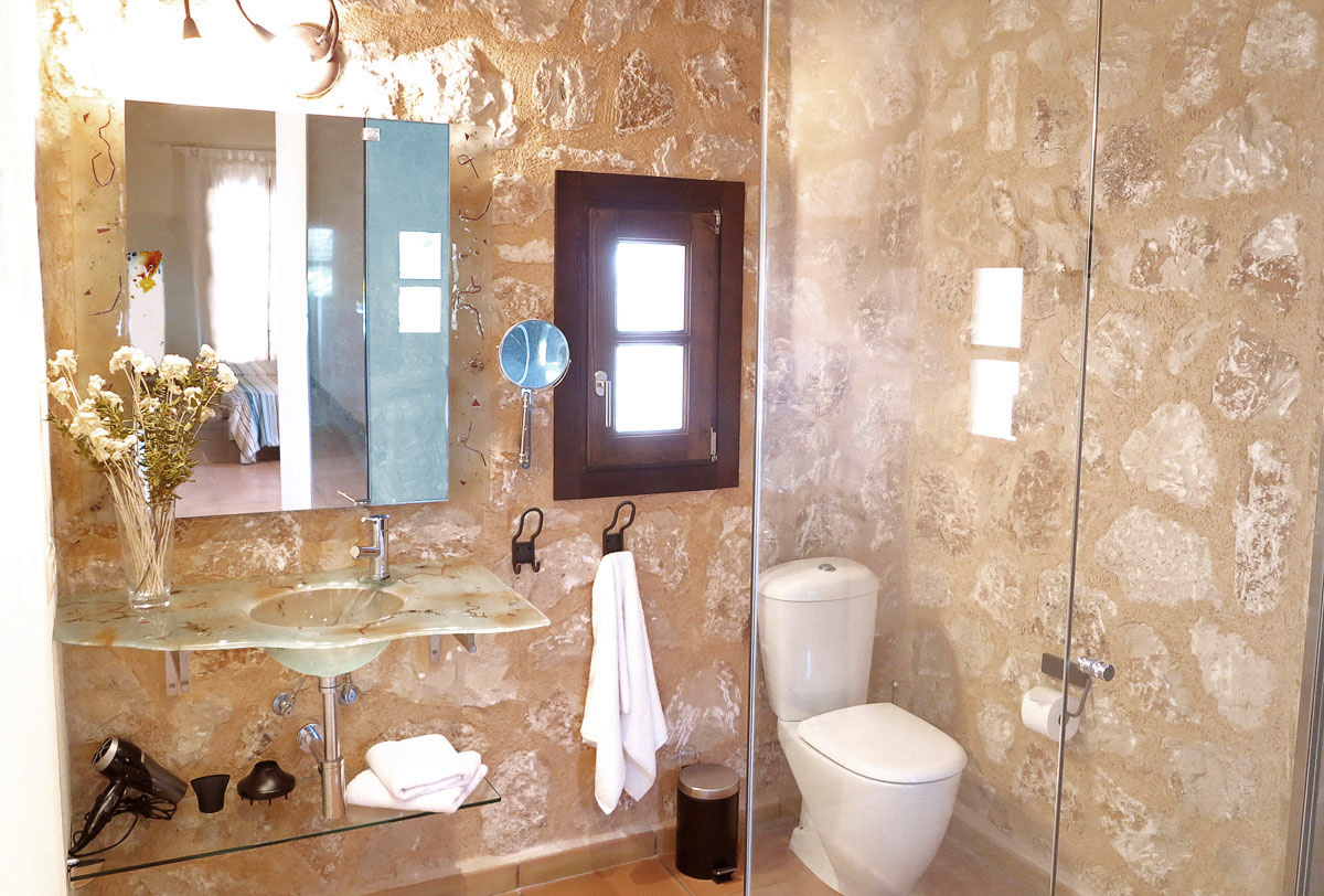 Bathroom to Bedroom no. 4 on the ground floor with natural stone walls